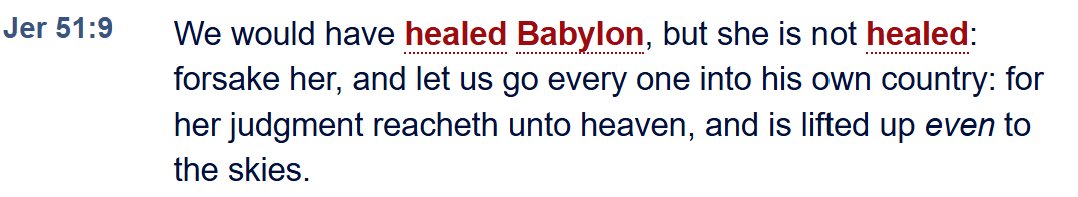 “Babylon is suddenly fallen and destroyed: howl for her; take balm for her pain, if so be she may be healed.”