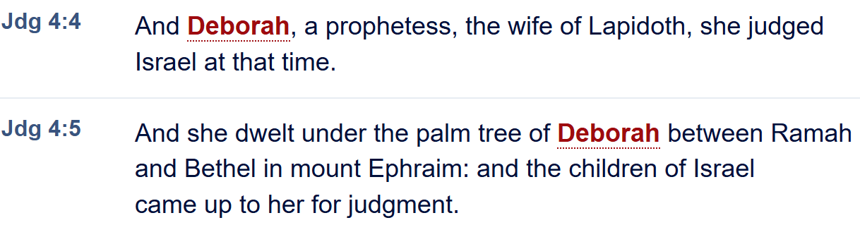 Deborah didn’t seek power. She didn’t boast in ruling over men. She was a prophetess who faithfully judged righteously in a time of male weakness.
