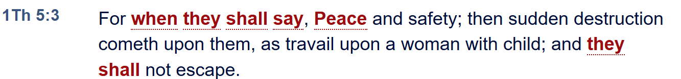 📜 1 Thessalonians 5:3 – “For when they shall say, Peace and safety; then sudden destruction cometh upon them, as travail upon a woman with child; and they shall not escape.”