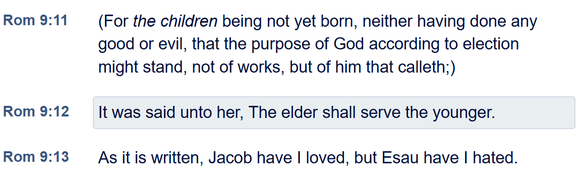 - “For Esau is the end of the world, and Jacob is the beginning of it that followeth” (2 Esdras 6:9).