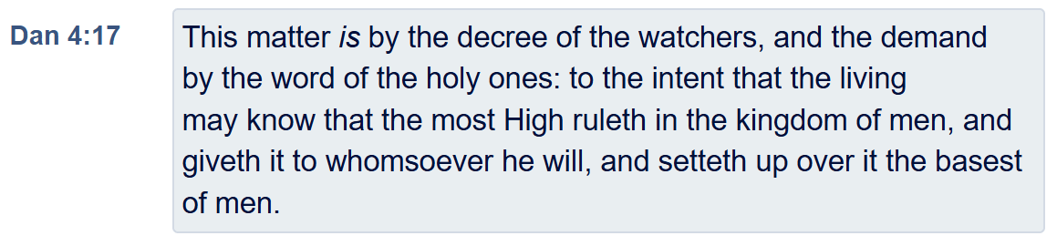📖 Daniel 4:17 — “…to the intent that the living may know that the most High ruleth in the kingdom of men, and giveth it to whomsoever he will, and setteth up over it the basest of men.”