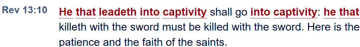📜 Revelation 13:10 – “He that leadeth into captivity shall go into captivity…”