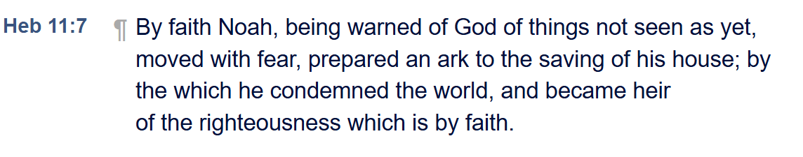 “By faith Noah, being warned… moved with fear, prepared an ark…” — Hebrews 11:7
